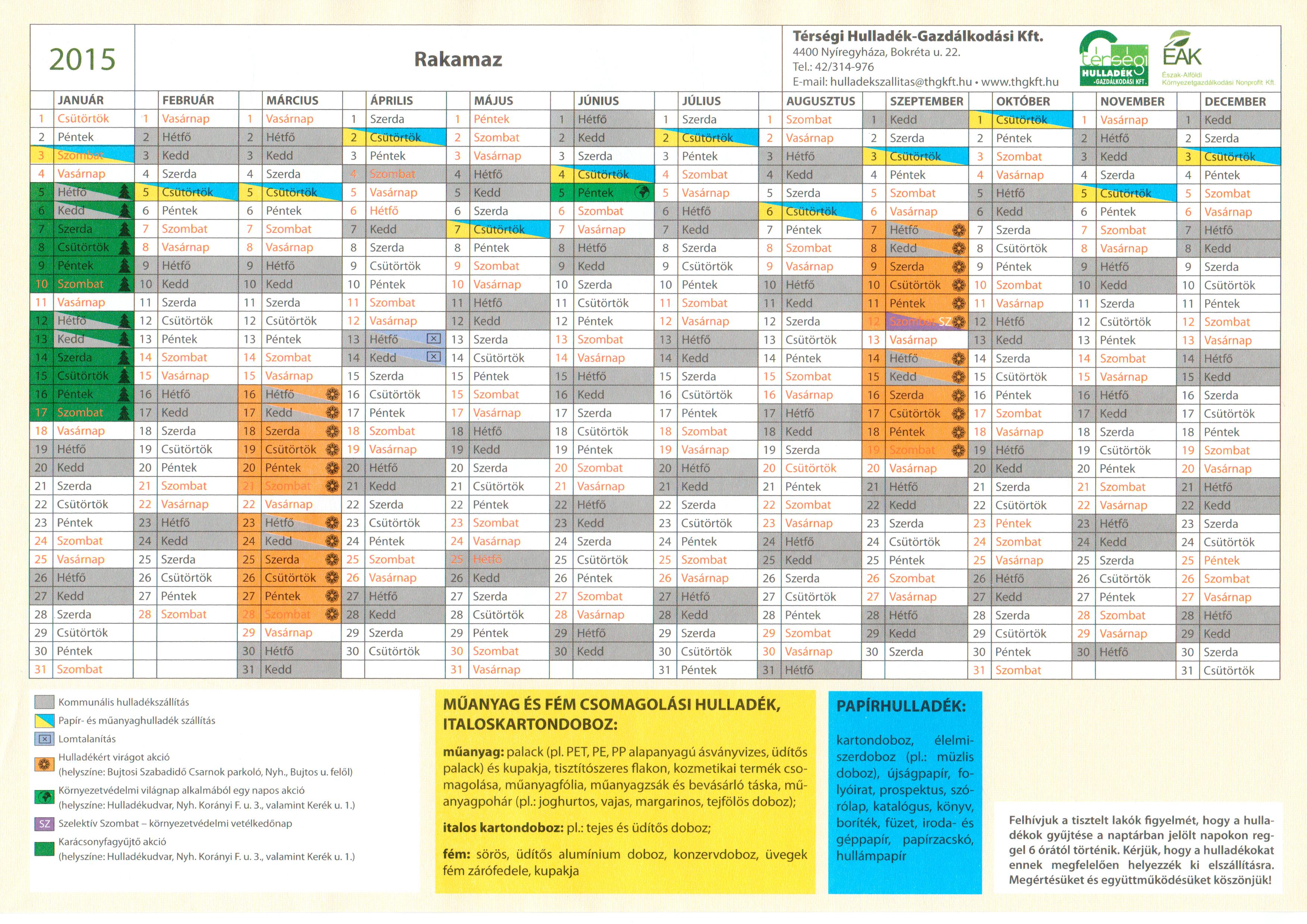 Hulladéknaptár 2016 Rakamaz